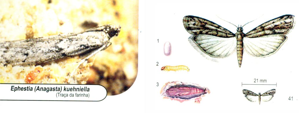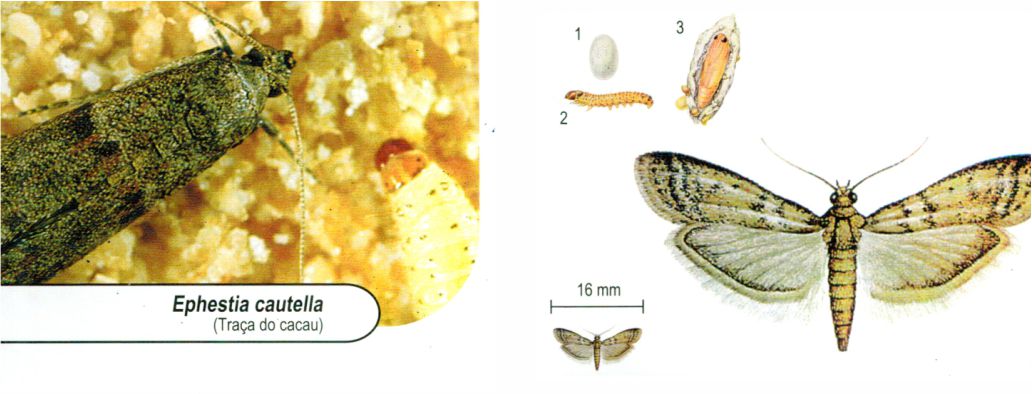 Também chamada “Traça do Cacau”. Presente em grande parte dos produtos armazenados, em regiões quentes. Importante também em moinhos, plantas de processamento de alimentos, cacau, frutas secas,