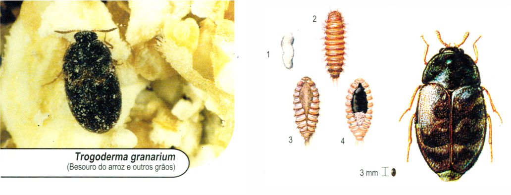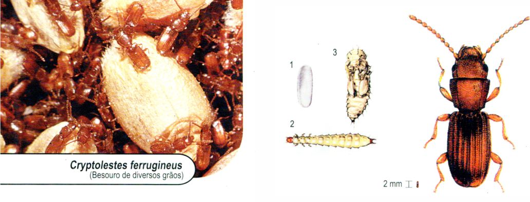 Principal praga dos cereais armazenados e também de produtos acabados (macarrão, biscoito, etc.)