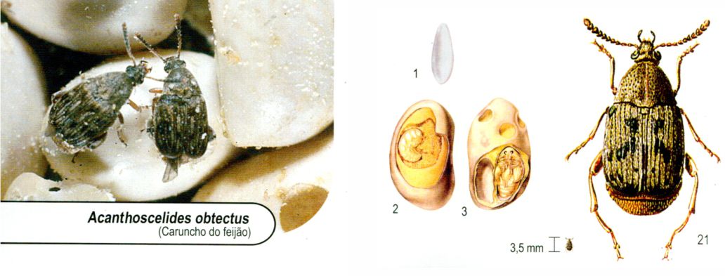 Conhecido como “caruncho do feijão”, de ocorrência mundial, atacando os grãos tanto nos armazéns como no campo.